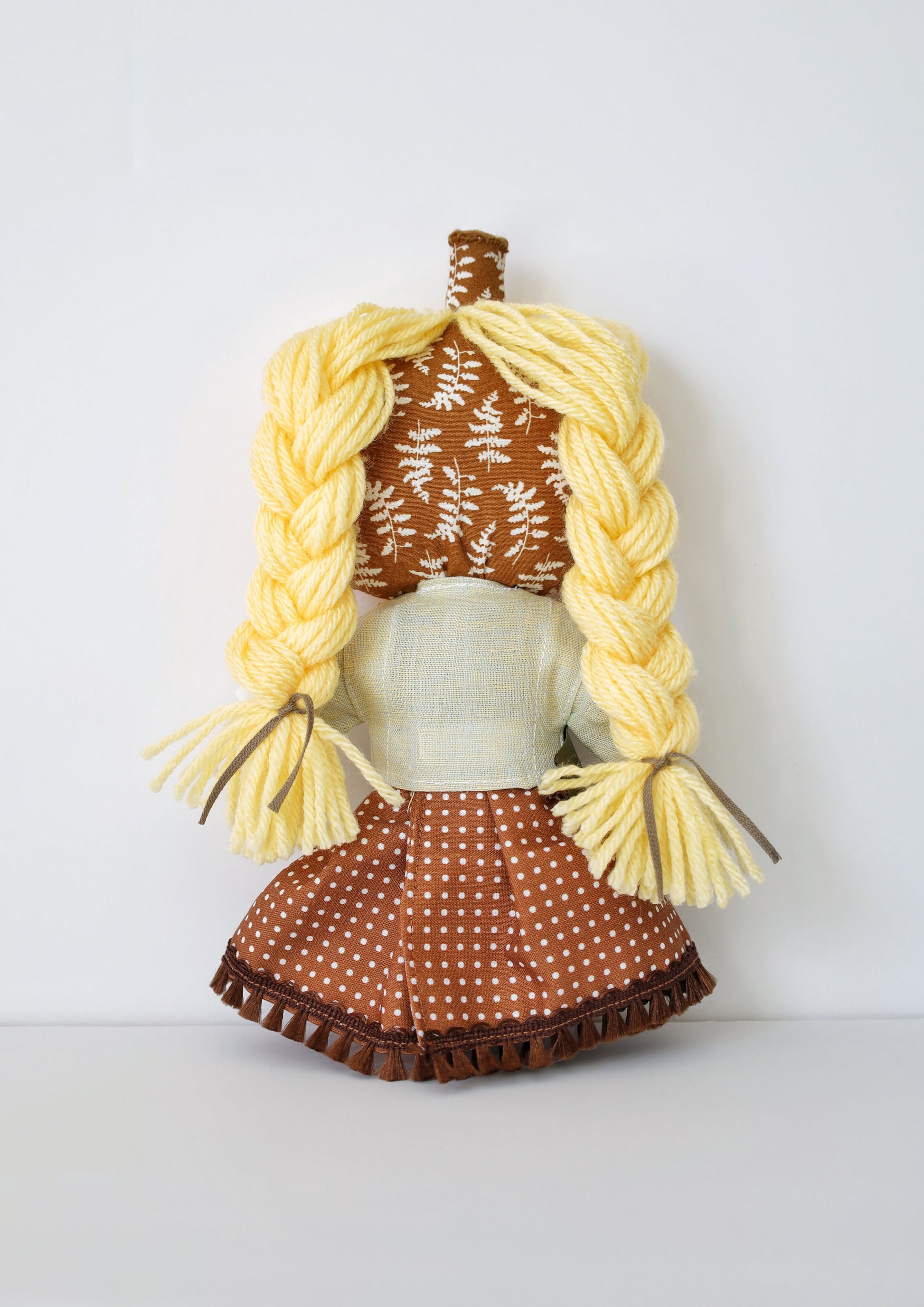 ✦ Mix of quilting cotton fabrics and felt with trimming and yarn hair.